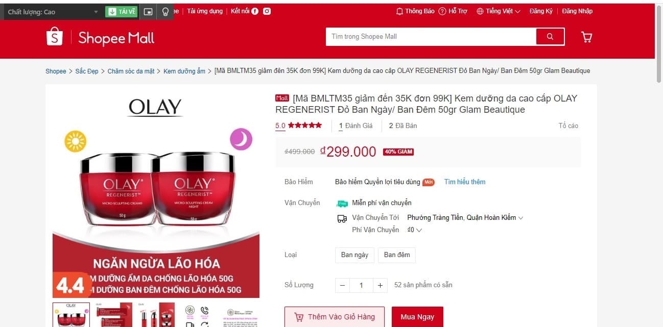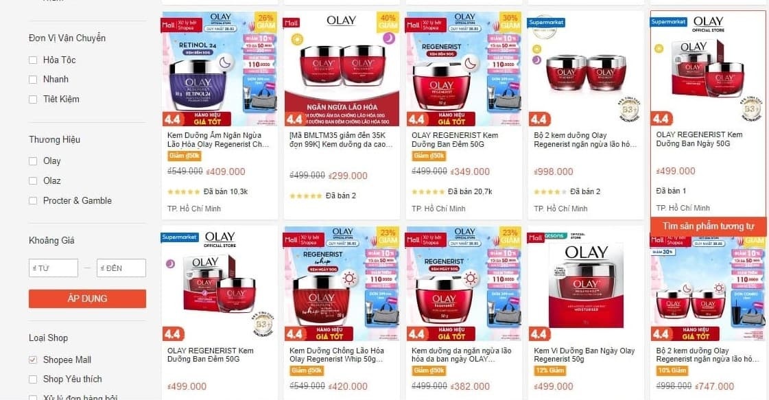 Tại cửa hàng phân phối mỹ phẩm chính hãng, bạn có thể tìm mua sản phẩm Kem Olay Regenerist. Tuy nhiên tại ShopMall – Shopee cũng là kênh mua sắm thú vị cho bạn. Nó giúp bạn mua hàng chính hãng, giao nhanh chóng và trên hết là được ưu đãi giá tốt hơn so với thị trường.