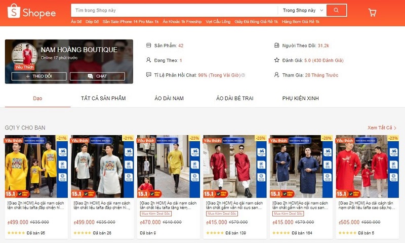 Nam Hoàng Boutique là một địa chỉ uy tín trên Shopee, nổi bật với sự chăm sóc tận tâm đến từng chi tiết của áo dài nam giới. Với một đội ngũ thợ may chuyên nghiệp và đầy tâm huyết, Nam Hoàng Boutique mang đến những mẫu áo dài đẹp, phối hợp màu sắc hài hòa và kiểu dáng đương đại. Khách hàng có thể yên tâm về chất lượng sản phẩm cũng như dịch vụ sau bán hàng, khi mỗi chiếc áo dài được sản xuất với sự tận tâm và kỹ năng cao.
