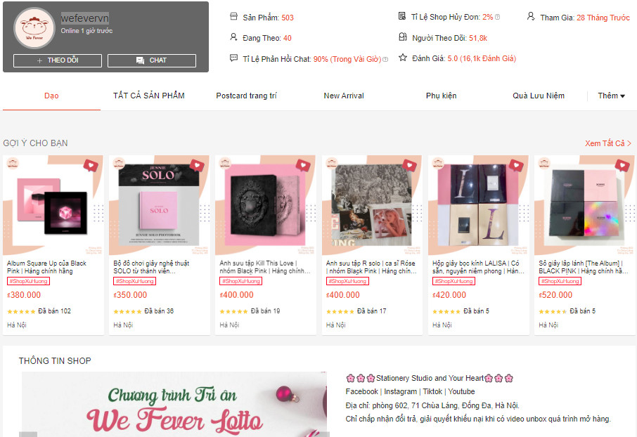 Một địa chỉ order các món đồ KPOP chính hãng nổi tiếng trong cộng đồng fan thì nhất định phải kể tới wefevervn. Không chỉ được chào đón mạnh mẽ tại Shopee mà shop này còn vô cùng nổi tiếng trên các nền tảng mạng xã hội khác như Facebook, Instagram hay Tiktok.
