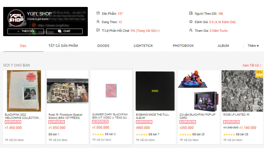 Đến với YGFL bạn có tìm thấy hầu hết các món đồ được bán trên website chính của YG Entertainment Hàn Quốc với mức giá không quá chênh lệch. Shop sẽ thường xuyên update các sản phẩm, album mới mỗi khi idol comeback và nhận order với các món đồ hiếm, nhanh hết hàng. Các nhóm nhạc bán chạy tại đây gồm Blackpink, Bigbang, IKON, Winner, AKMU… Điểm trừ là shop này chỉ có đồ nhà YG còn các idol nhà khác sẽ không có.