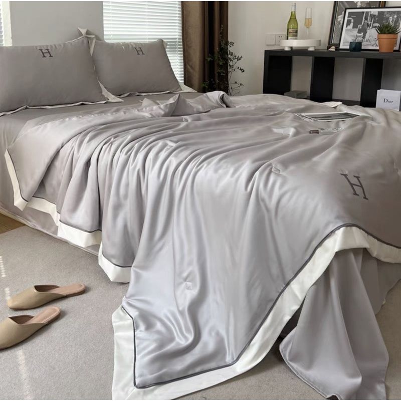- Bộ Chăn Ga Gối Phi Lụa Thêu Chữ
