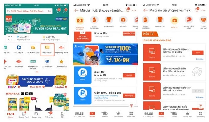 - Mã lưu trước tại banner: sẽ được hiển thị nút “Lưu” trước giờ sale và việc của bạn là thu thập những mã lưu trước này lại để canh đúng giờ đặt hàng để áp dụng mã giảm giá này vào hóa đơn thanh toán.