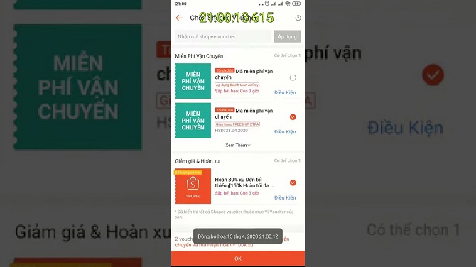 - Gần tới giờ săn sale thì bạn áp mã vào và đi tới bước đặt hàng cuối cùng. Bạn canh tới giờ thì chọn mục Voucher Shopee, mã sẽ hiển thị ở ngay mục đầu tiên của phần mã giảm giá. Theo quy tắc hiển thị của Shopee thì mã giảm giá “ngon nhất” sẽ được đặt ở vị trí đầu tiên nên bạn cứ lưu, sử dụng mã đó là có thể giảm được phần nào cho đơn hàng của bạn.