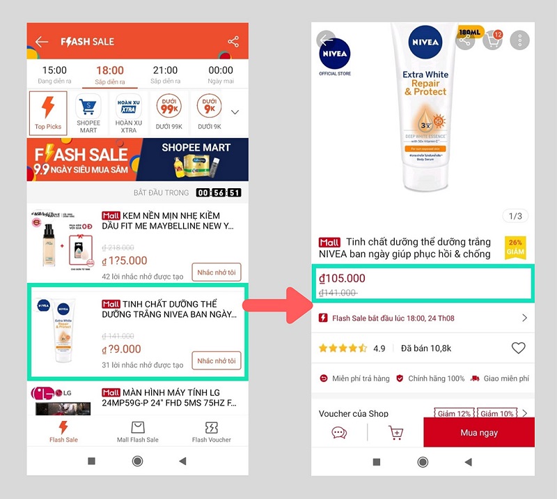 - Các sản phẩm bạn muốn săn sale đề phải cùng một khung giờ Flash sale