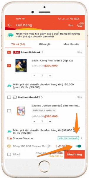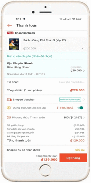 - Bạn có thể chọn sử dụng Shopee xu (nếu có).
