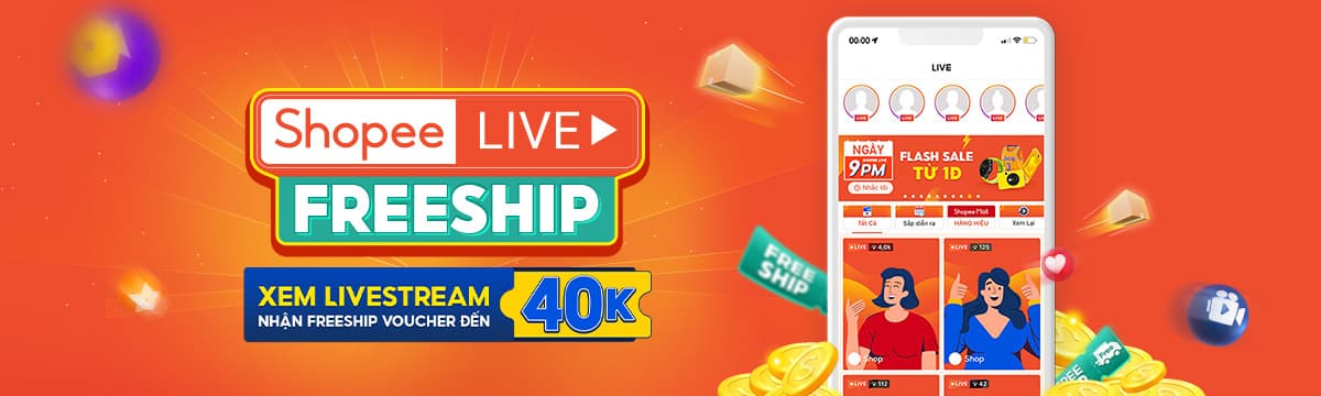 Đón xem Shopee Live ( Livestream ) mỗi ngày để săn ngay hàng nghìn voucher miễn phí vận chuyển đến 40K cho đơn hàng từ 25.000 đồng. Đặc biệt vào12H mỗi ngày, tại Shopee Live người xem sẽ có cơ hội nhận thêm mã Freeship 70K và Voucher giảm 50% mua hàng tại Shopee