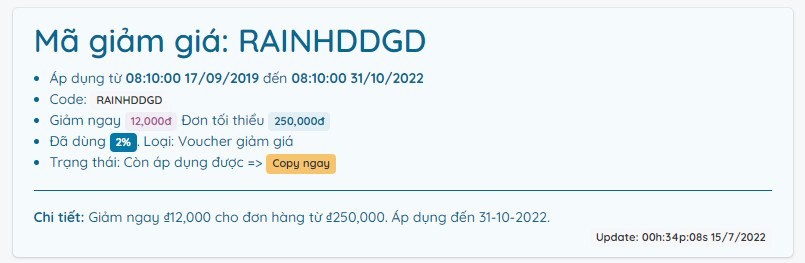 Sau khi đã nắm được các thông tin về từng mã giảm giá áp dụng được của shop, bạn chọn 1 mã phù hợp sau đó nhấn vào mục Copy ngay để lấy mã thanh toán.