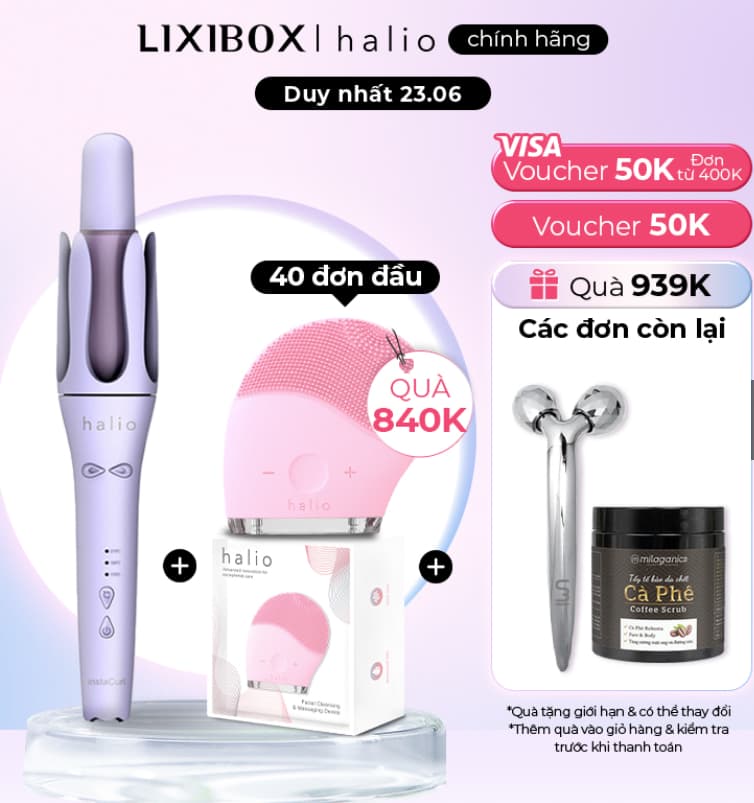- 40 đơn đầu tiên tặng máy rửa mặt Halio Sensitive Facial Device