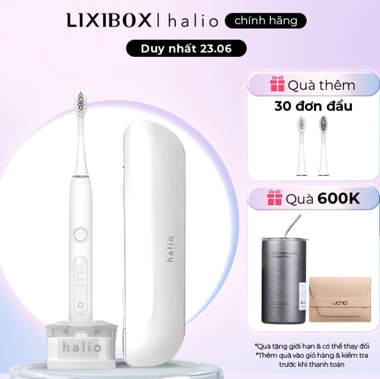 30 đơn đầu tặng 2 đầu bàn chải điện Halio, ví mini cầm tay Jomo và ly giữ nhiệt
