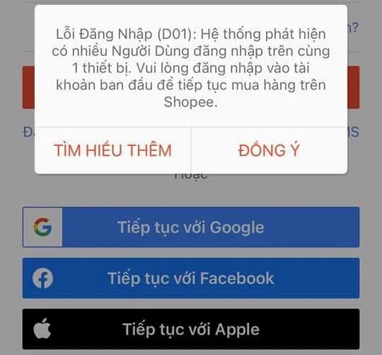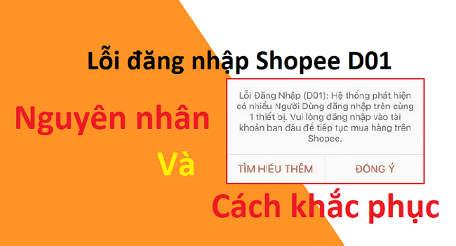 Lỗi D01 là lỗi xảy ra khi bạn đăng nhập nhiều hơn một tài khoản trên cùng một thiết bị. Khi bị gặp lỗi D01 Shopee sẽ gửi đến tài khoản Shopee của bạn dòng thông báo như sau: “Đăng nhập không thành công (D01): Hệ thống phát hiện bạn đã đăng nhập vào nhiều tài khoản bằng thiết bị này. Vui lòng đăng nhập vào một trong những tài khoản trước đó để sử dụng dịch vụ của Shopee”.