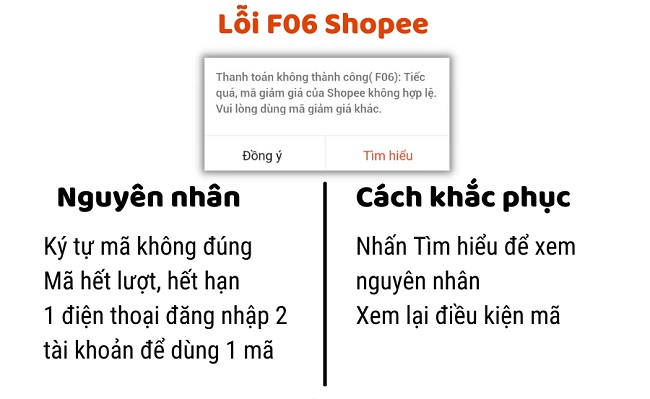 Tóm lại, lỗi F06 là lỗi thanh toán khi tài khoản Shopee của bạn áp dụng các mã giảm giá vào đơn hàng để thanh toán không thành công.
