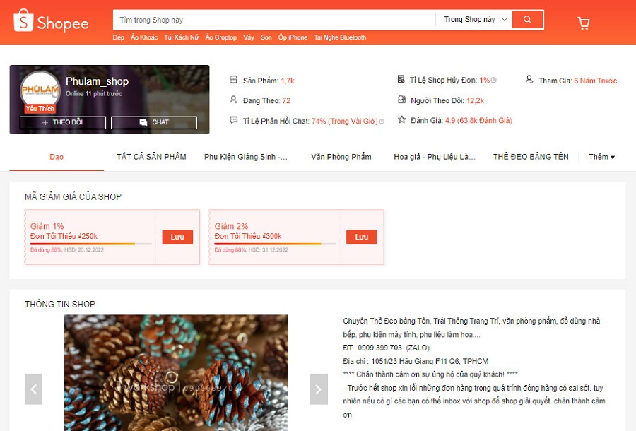 Phú Lâm shop có cửa hàng tại Tp.HCM nhưng nếu bạn ở xa bạn có thể đặt qua Shopee. Shop chuyên bán những đồ văn phòng phẩm và phụ kiện trang trí cây thông Noel giáng sinh tại đây có lượt bán vô cùng cao. Ngoài ra, tất cả những sản phẩm shop đều có hình thật đi kèm để giúp bạn yên tâm hơn khi mua. Phú Lâm có những chính sách bảo đảm quyền lợi cho người mua nếu sản phẩm có lỗi hoặc giao sai sản phẩm.