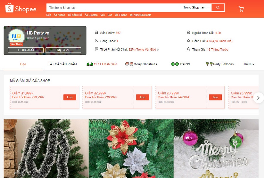 Phụ kiện quà tặng Noel bán rất nhiều phụ kiện trang trí Noel xinh xắn và độc lạ, có nhiều mẫu độc quyền chỉ có tại shop mới bán mà giá của những phụ kiện này cũng rất rẻ nên shop luôn thu hút nhiều người mua. Shop cũng có rất nhiều chương trình ưu đãi dành cho khách hàng của họ, đặc biệt ở trên sàn Shopee hầu như lúc nào cũng có voucher giảm giá.