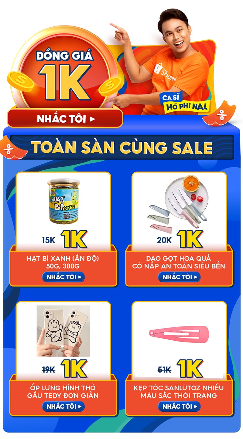 >> Săn sale đồng giá 1K Shopee 15.8 TẠI ĐÂY