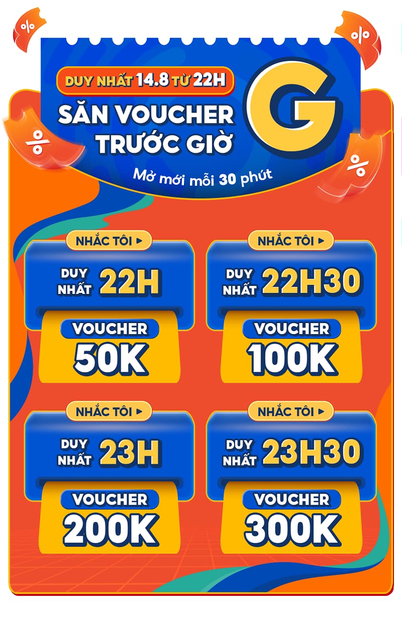 Voucher trước giờ G là các voucher bạn có thể săn được để sử dụng trước sự kiện 15.8. Có các voucher bạn nên lưu ý và thời gian mở của nó là như sau: