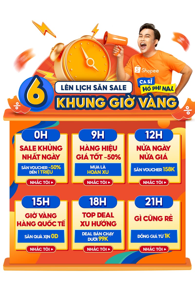 Các thương hiệu sẽ sale các sản phẩm vào các khung giờ như: 0H, 9H, 12H, 15H, 18H, 21H.