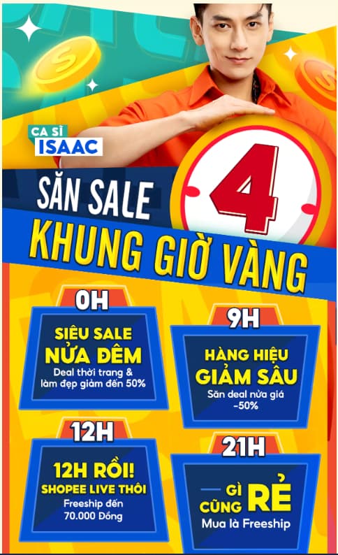 Trong sự kiện Shopee Sale 15.8 này, chúng ta sẽ có 4 khung giờ vàng săn deal mà mọi người cần phải "đặt báo thức":