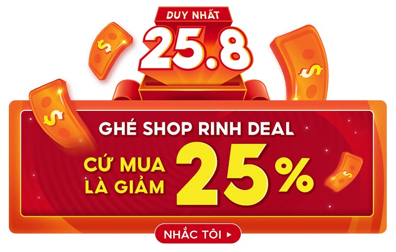 Duy nhất trong ngày 25/8/2022, cứ mua sản phẩm tại các gian hàng tham gia chương trình là bạn sẽ được giảm 25%.