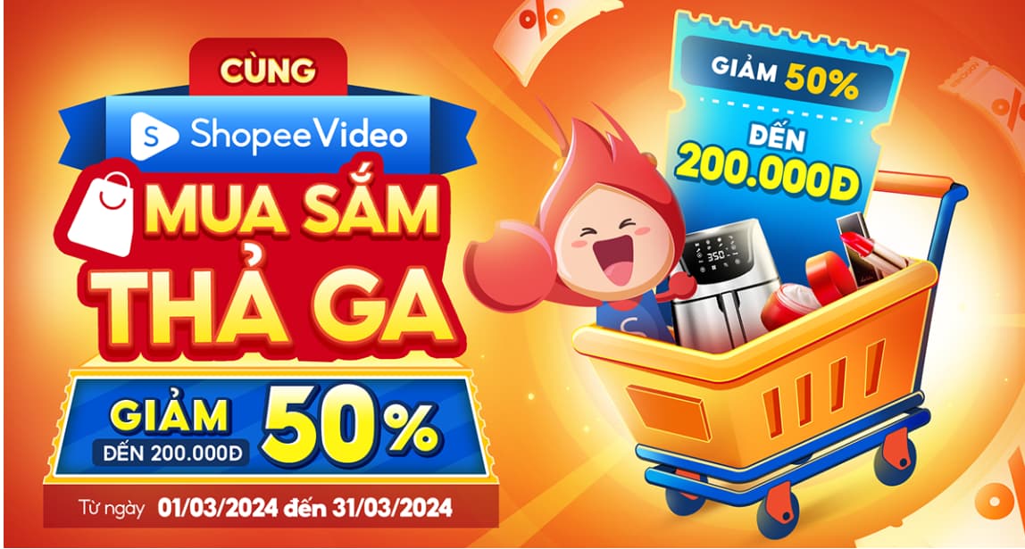 Lướt Shopee Video săn voucher đến 50% chính là tâm điểm trong đợt sale 4.4 lần này của Shopee. Bạn có thể săn voucher giảm đến 50% (tối đa 200K) khi tham gia chương trình Shopee Video - mua sắm thả ga. Chương trình áp dụng từ ngày 1/3 - 31/3/2024.