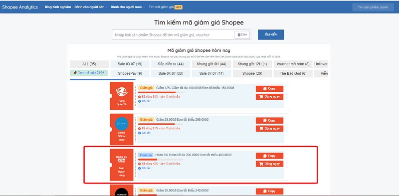 3. Lấy mã hoàn xu tại trang web https://www.shopeeanalytics.com/