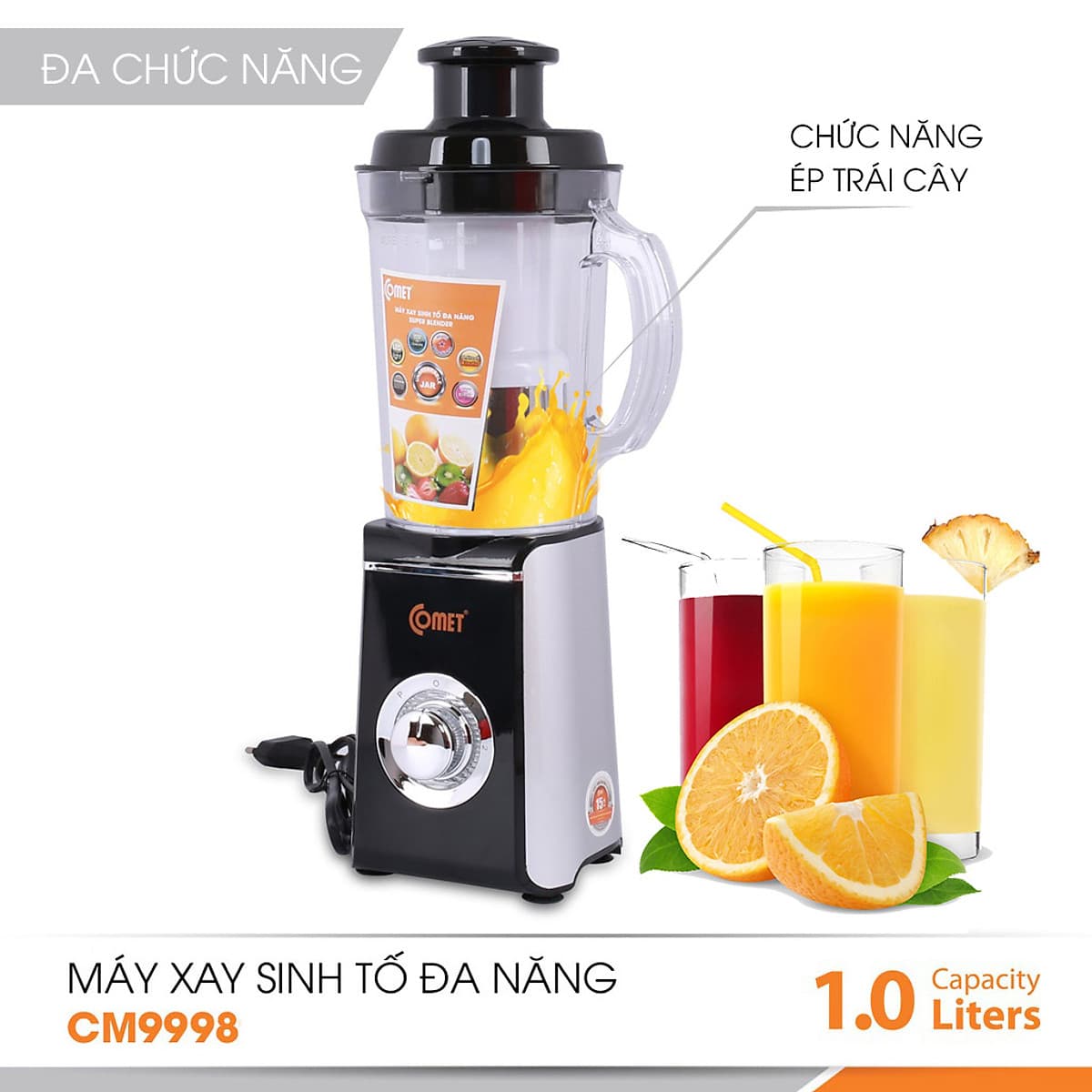 Máy xay sinh tố Comet CM9998 là dòng sản phẩm được đánh giá cao bởi nó sở hữu thiết kế dao xay i-nox cao cấp, có khả năng xay nát thực phẩm một cách tức thì. Không chỉ vậy, nó còn có khả năng tiết kiệm điện cao với công suất thiết kế chỉ 220W nhưng vẫn đảm bảo phần động cơ mạnh mẽ bên trong. Tuy nhiên cối xay mủa máy Comet CM9998 hơi nhỏ, không xay được nhiều thực phẩm cùng 1 lúc như dòng Sunhouse SHD 5338. Mặc dù vậy, dòng Comet CM9998 này lại có khả năng xay thực phẩm khá ổn, đa chức năng, độ bền cao, dễ sử dụng và vệ sinh máy. Các bạn có thể mua sản phẩm này ở các siêu thị điện máy hoặc trên shopee để có giá ưu đãi nhất nhất nhé!