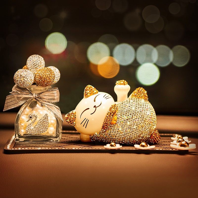 2. Mèo thần tài trang trí ô tô bằng nhựa tổng hợp, đính đá