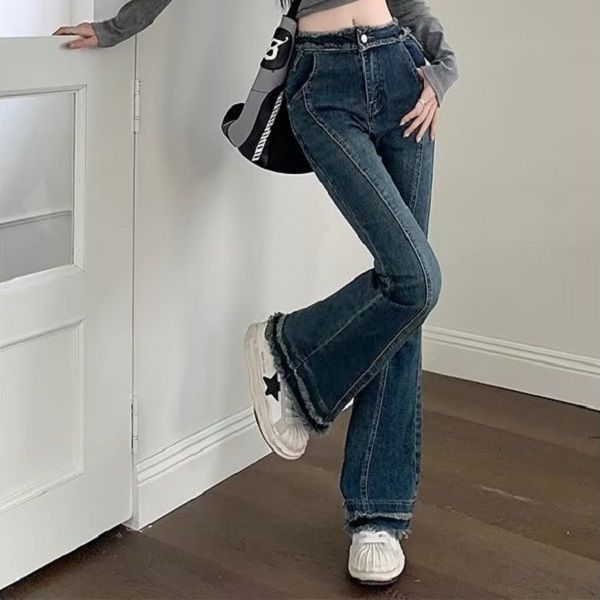 - Quần jean ống loe trơn tua rua