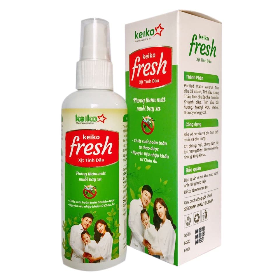 Tinh dầu đuổi muỗi Keiko Fresh là sự kết hợp các loại tinh dầu thiên nhiên có công dụng xua đuổi muỗi côn trùng.