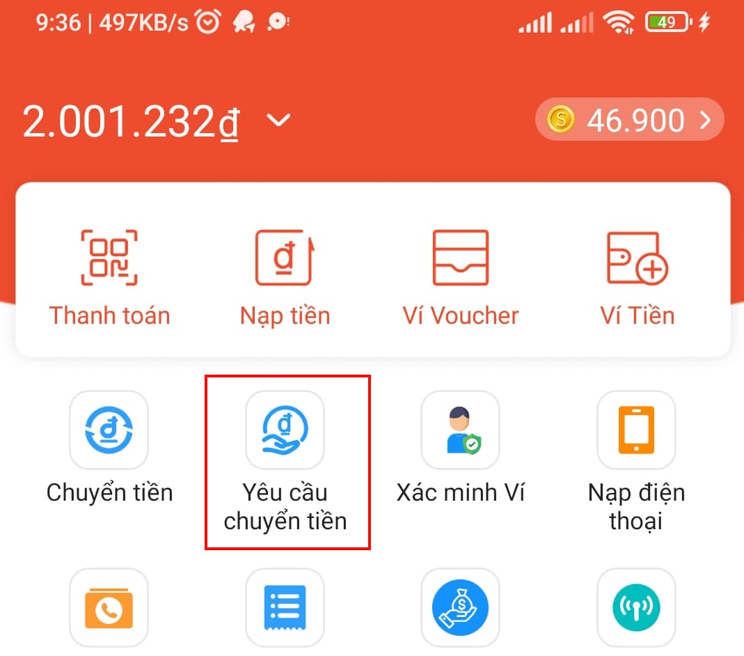 Bước 1: Vào ứng dụng ShopeePay trên điện thoại > Yêu cầu chuyển tiền