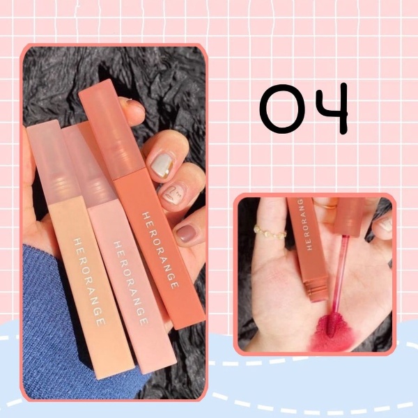 - Son kem Herorange Fluffy Lip Glaze với vỏ hộp mờ và những màu son siêu sang.