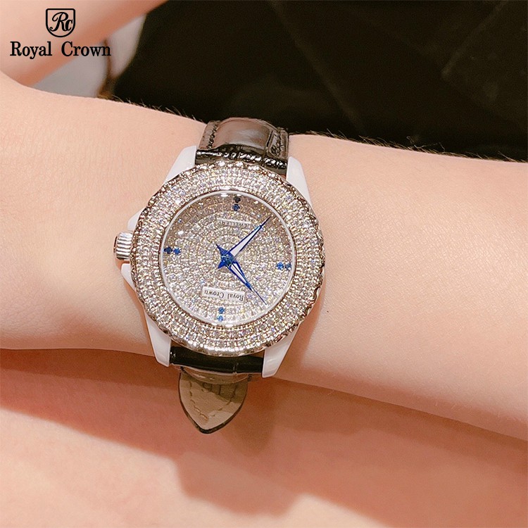 3.3. Đồng Hồ Nữ Chính Hãng Dây Da Royal Crown 3628 Chống Nước Chống Xước