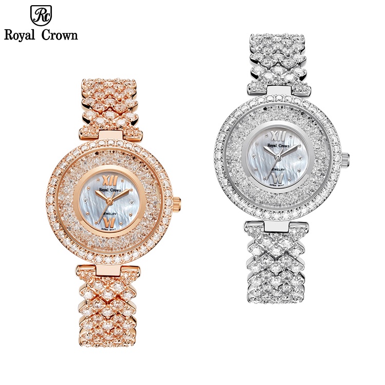3.5. Đồng Hồ Nữ Chính Hãng Dây Kim Loại Đính Đá Royal Crown 2606 Jewelry Chống Nước