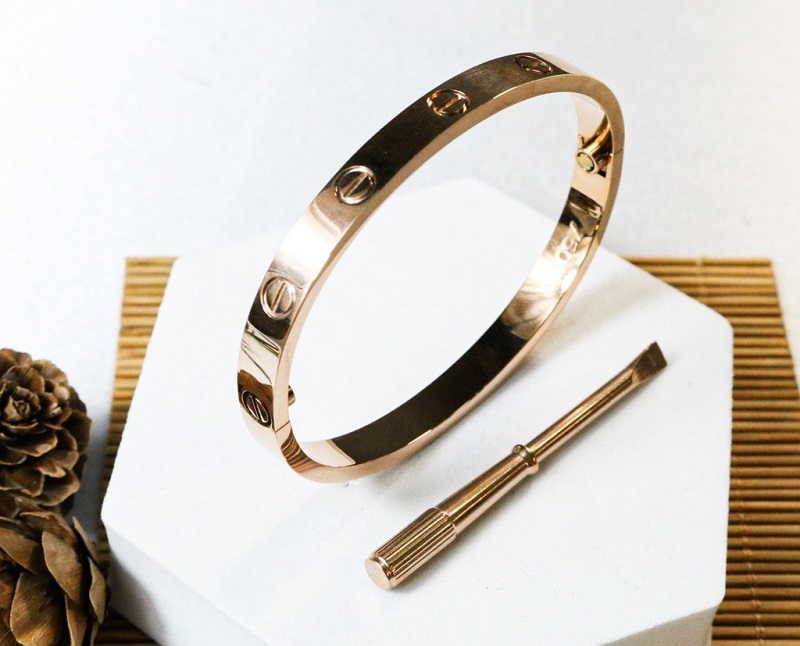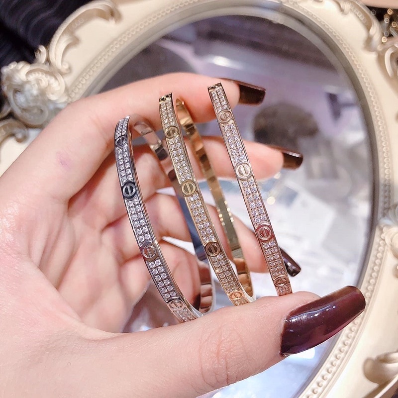 Vòng tay titan có thiết kế theo kiểu dáng hình oval có đính đá hoặc không đính đá với 3 màu hồng, trắng, vàng cho bạn thỏa sức lựa chọn. Vòng tay có khắc chữ Cartier và size của vòng tay ngay bên trong lòng vòng. Sản phẩm có kích thước là loại 55mm và loại 60mm thường được gọi là ni 16 và 19 nha. Khi sử dụng không gây dị ứng cho da nhạy cảm hay ảnh hưởng đến sức khỏe nên bạn có thể yên tâm sử dụng nhé.