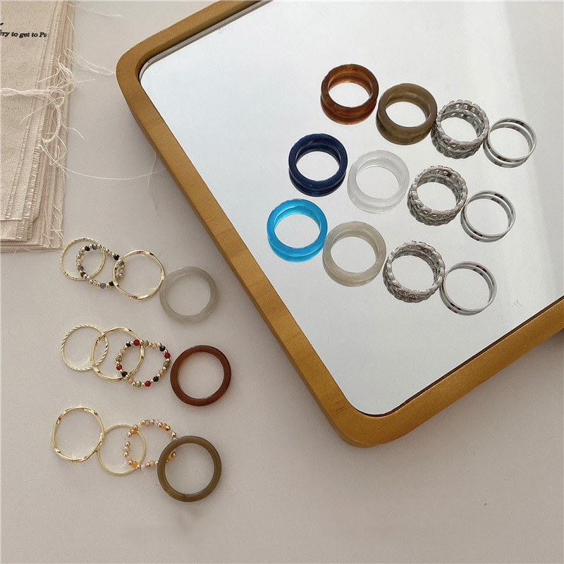 2. Set nhẫn nhựa Acrylic cho nữ phong cách cổ điển