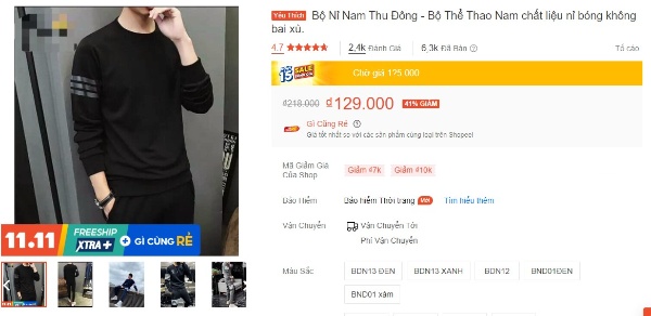 - Bước 1: Tìm kiếm set bộ nam bạn cần mua trên Shopee.