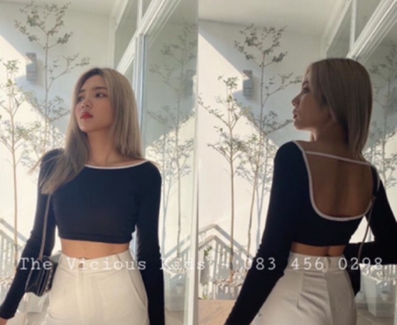 Mẫu áo này được thiết kế theo kiểu croptop trông vừa hở lại vừa không hở, freesize cho các nàng dưới 53kg mặc lên là rất đẹp. Phần sau áo hở ⅓ lưng trần trông vô cùng quyến rũ và cá tính. Sản phẩm còn được điểm tô thêm phần viền trắng hoặc đen trông khá bắt mắt.