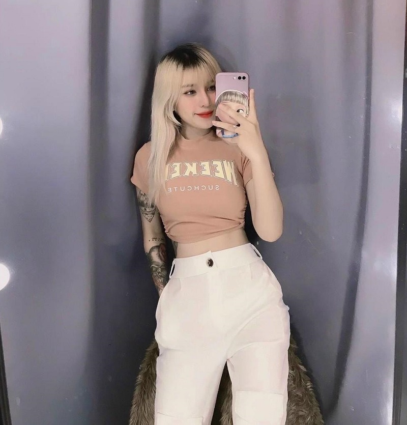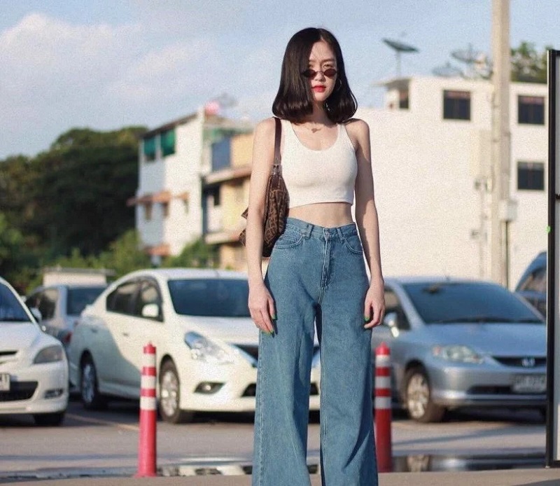 Phối với quần cạp cao: trông rất đơn giản nhưng sẽ giúp bạn trông vô cùng cá tính, hiện đại và khá kín đáo.