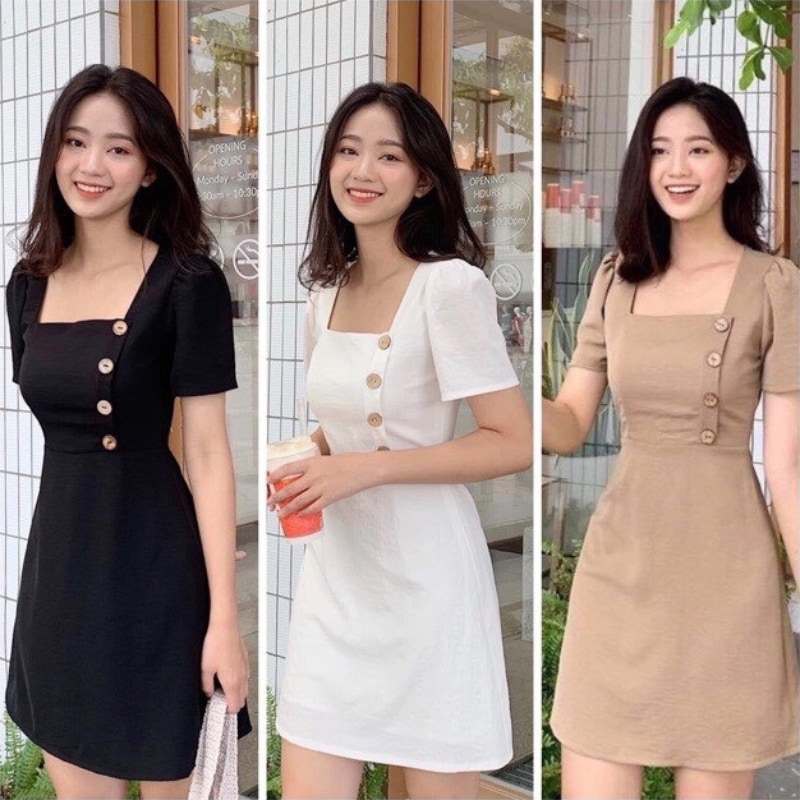 2. Đầm nữ cổ vuông phối nút D0121 nhiều màu, đủ size