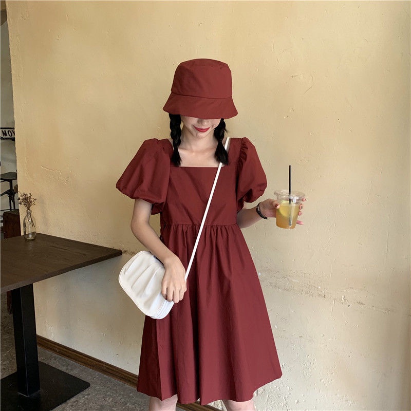 7. Đầm babydoll nữ cổ vuông ulzzang tay phồng ngắn, bigsize LOKISO VD07