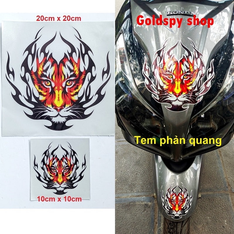Tem decal phản quang hổ lửa có kiểu dáng họa tiết trang trí độc lạ, lạ mắt. Bạn có thể dán decal lên thân đầu xe, dán mũ bảo hiểm, dán mặt nạ,... Sản phẩm có kích thước to nhỏ khác nhau cho bạn lựa chọn theo đúng nhu cầu sử dụng của bạn.