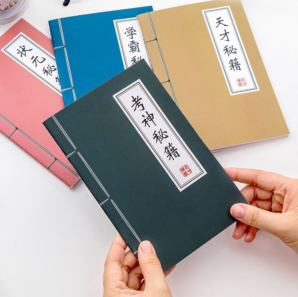 Với thiết kế bìa sách vô cùng độc đáo như một cuốn “bí kíp võ công” trong phim truyện cổ trang Trung Quốc. Cuốn sổ ghi chép này được khá nhiều bạn quan tâm vì được thiết kế bởi tấm bìa độc đáo này. Phía trong phần giấy được thiết kế kiểu không dòng kẻ giúp bạn thoả sức sáng tạo mà không bị gượng ép hay gò bó bởi khuôn khổ nào cả. Hầu hết sổ bí kíp có kích thước nhỏ nhắn, phù hợp, bạn có thể mang theo bên mình đi bất cứ đâu.
