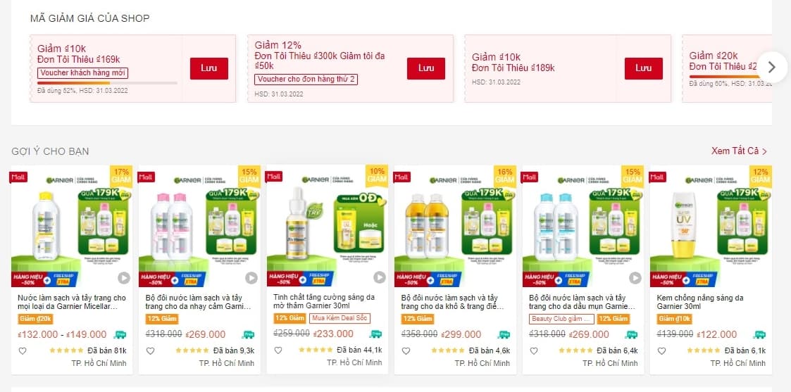 Trong tháng 3 này, bạn nãy nhanh tay truy cập vào của hàng chính hãng Shopee Mall của mỹ phẩm Garnier để sưu tầm mã giảm giá cực kì hấp dẫn tại đây nhé.