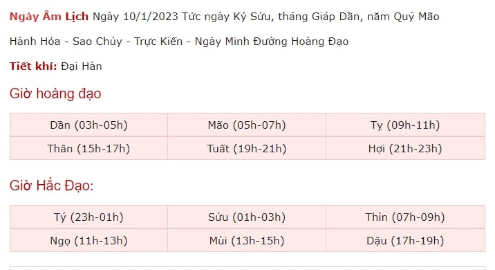 Giờ tốt và xấu ngày mùng 10 tháng Giêng năm 2023