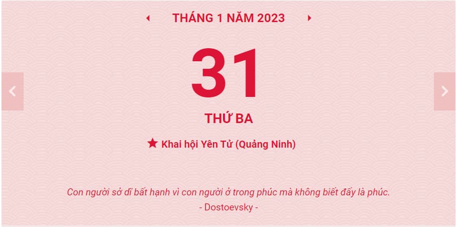 - Lịch Âm: 10/01/2023 (Ngày Kỷ Sửu , tháng Giáp Dần, năm Quý Mão).