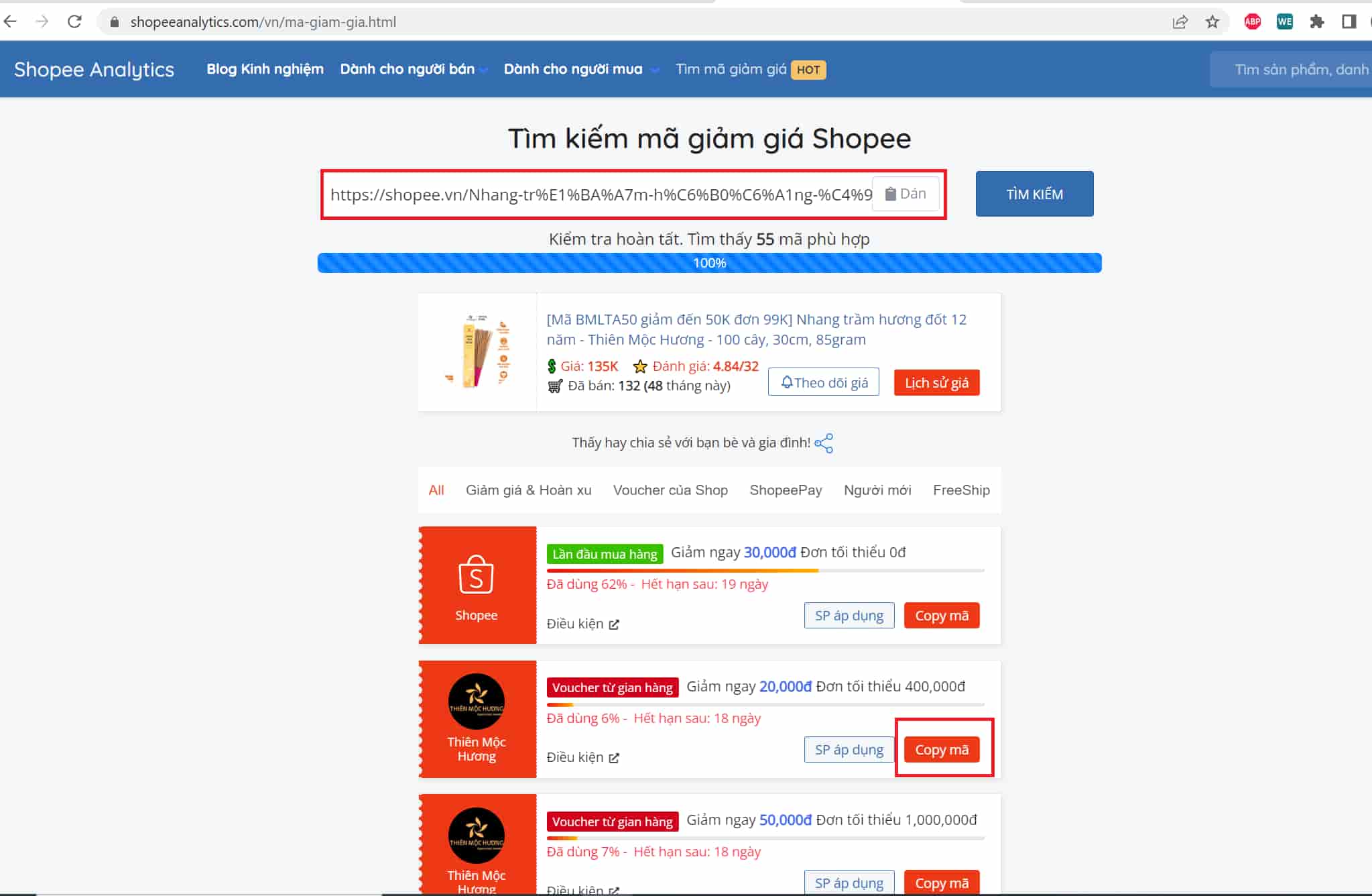 5. Hướng dẫn săn mã giảm giá trên ShopeeAnalytics để áp dụng cho sản phẩm nhang trầm hương