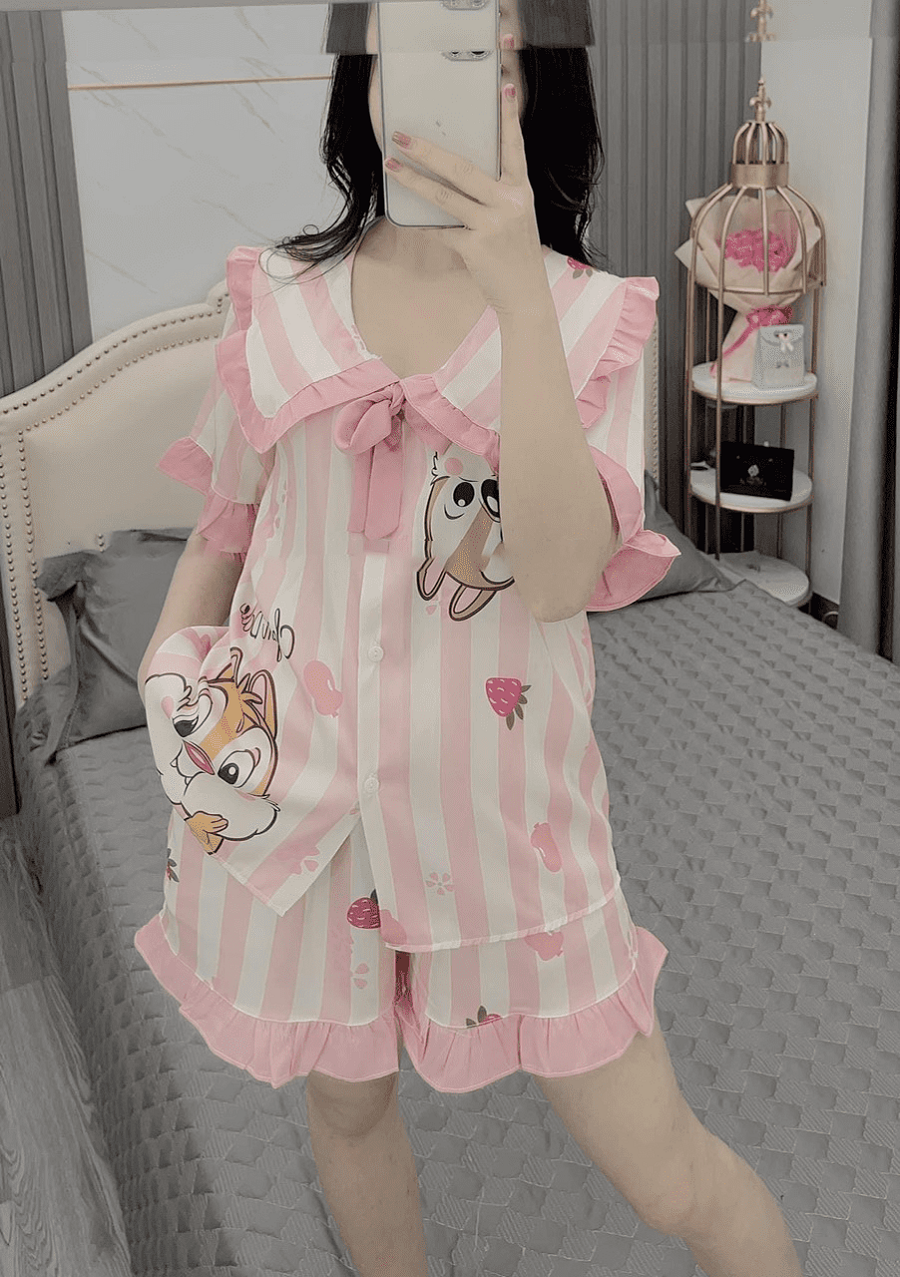 Nếu bạn là một cô nàng bánh bèo thì bộ pijama tiểu thư này sinh ra là dành cho bạn đó. Với thiết kế phối nơ và bèo nữ tính sẽ làm bạn trông dễ thương hơn. Ngoài ra, những bộ pijama tiểu thư thường sẽ được gia công từ những kate nhẹ, thoáng mát, không lo bị chảy xệ và vô cùng thoải mái. Những màu sắc thường được lựa chọn để may là những tone màu nhẹ nhàng, nữ tính như be, hồng, vàng,... Thêm vào đó là những họa tiết hoa nhí hoặc những nhân vật hoạt hình vô cùng đáng yêu. Đảm bảo cô nàng bánh bèo nào cũng sẽ thích.