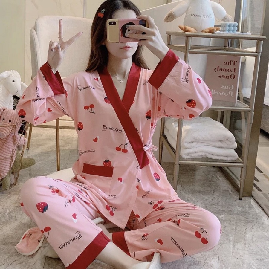 Pijama kimono được lấy cảm hứng từ đồ ngủ của người Nhật. Sản phẩm đồ bộ này được thiết kế với những chiếc dây thắt để điều chỉnh độ rộng chật của áo. Loại vải được sử dụng để may pijama kimono cũng không khác gì lắm so với những loại kiểu dáng pijama khác đó là kate thái loại một thoáng mát, nhẹ nhàng, không bị nhăn hay dão khi giặt.