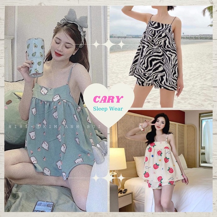1. Đồ bộ ngủ hai dây mặc nhà mùa hè dễ thương Cary