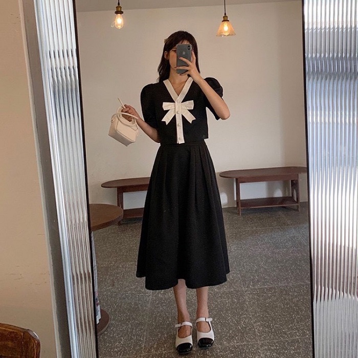 4. Set váy ZapLang tiểu thư nơ ngực 2 màu