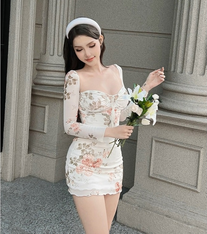 Đầm họa tiết thời thượng, trendy dáng ôm